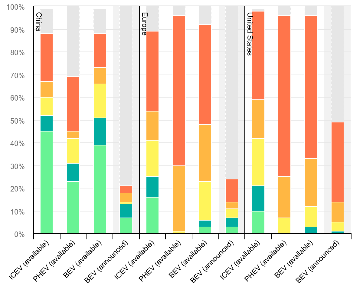 At the low end of the market, choices are scarce. Chevrolet’s Bolt EV, once the cheapest option at around $26,500, saw sales surge 63% in 2023 before being discontinued (IEA, 2025). As of 2024, fewer than 5% of EV models in Europe were priced below €25,000 (~$27,000), and the U.S. similarly lacks affordable options (IEA, 2025).